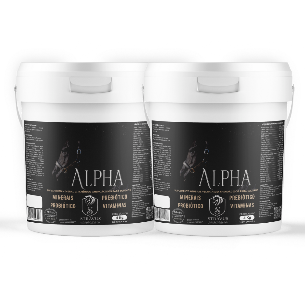 O suplemento Alpha foi desenvolvido para oferecer suporte completo à saúde e ao desempenho dos equinos em todas as fases da vida, combinando vitaminas, minerais, probióticos e prebióticos em uma fórmula balanceada.