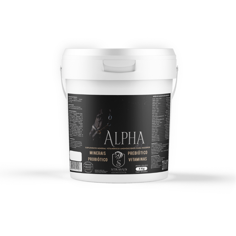 O suplemento Alpha foi desenvolvido para oferecer suporte completo à saúde e ao desempenho dos equinos em todas as fases da vida, combinando vitaminas, minerais, probióticos e prebióticos em uma fórmula balanceada.
